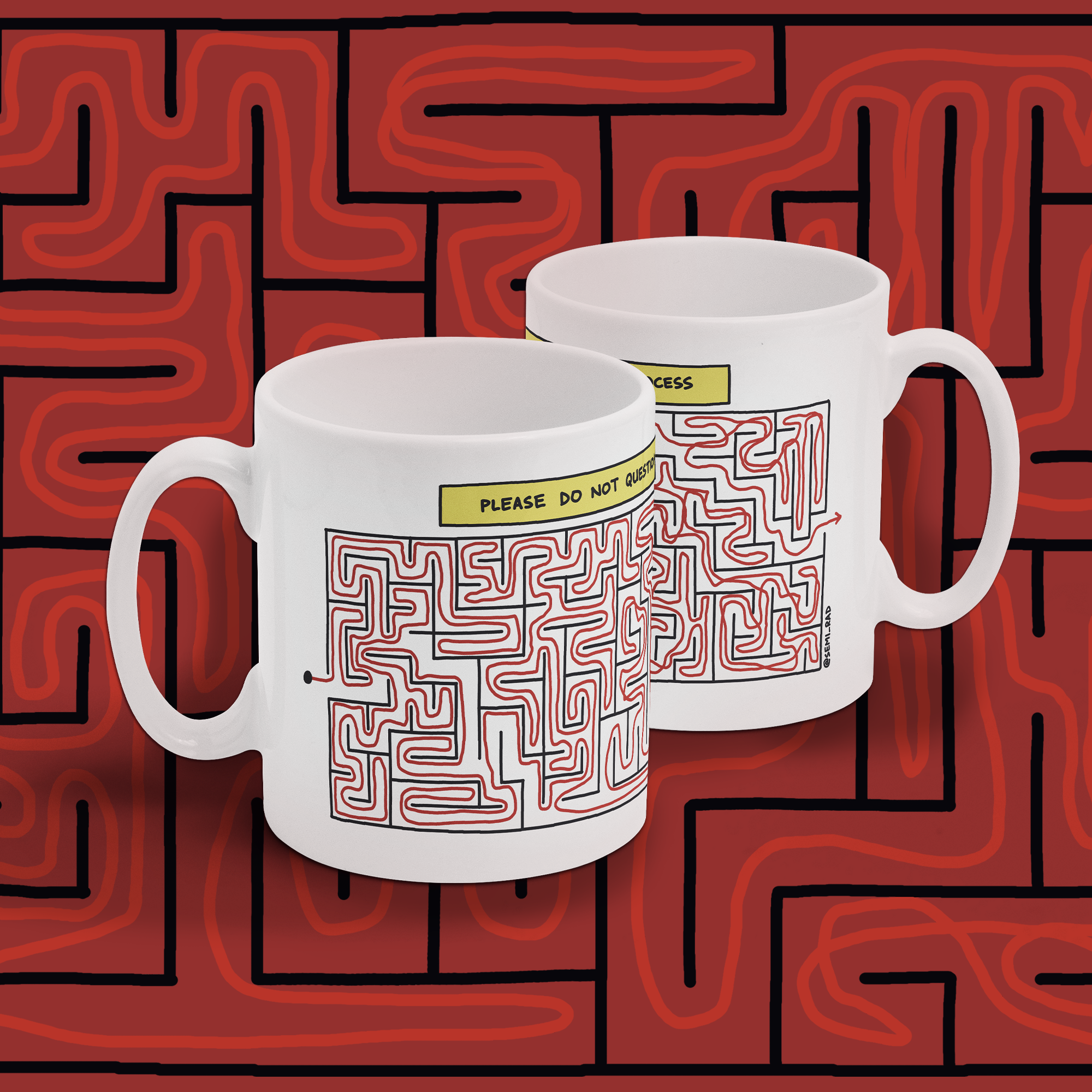 The creative process is not a straight line, and if anyone around you (including yourself) needs a reminder, this mug should do the trick.