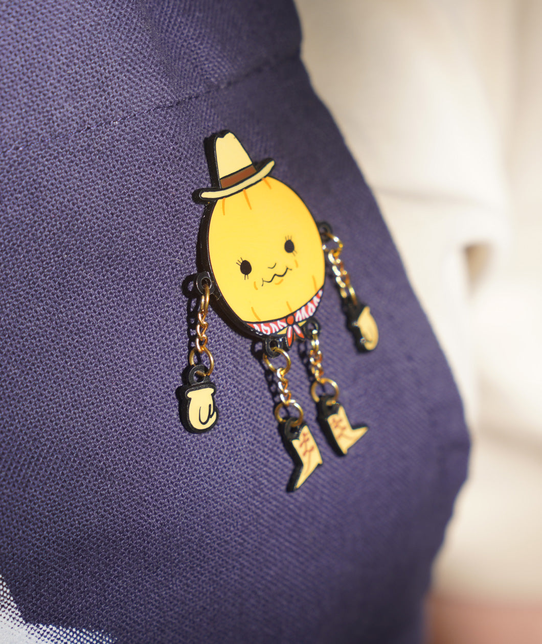 Il déracine, il pète, et maintenant il peut vous accompagner partout ! Un pin's du légendaire Cowboy Citrouille, un cow-boy qui était aussi une citrouille.