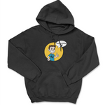 Direct To Garment print on a black midweight Independent Trading Co. hooded sweatshirt.