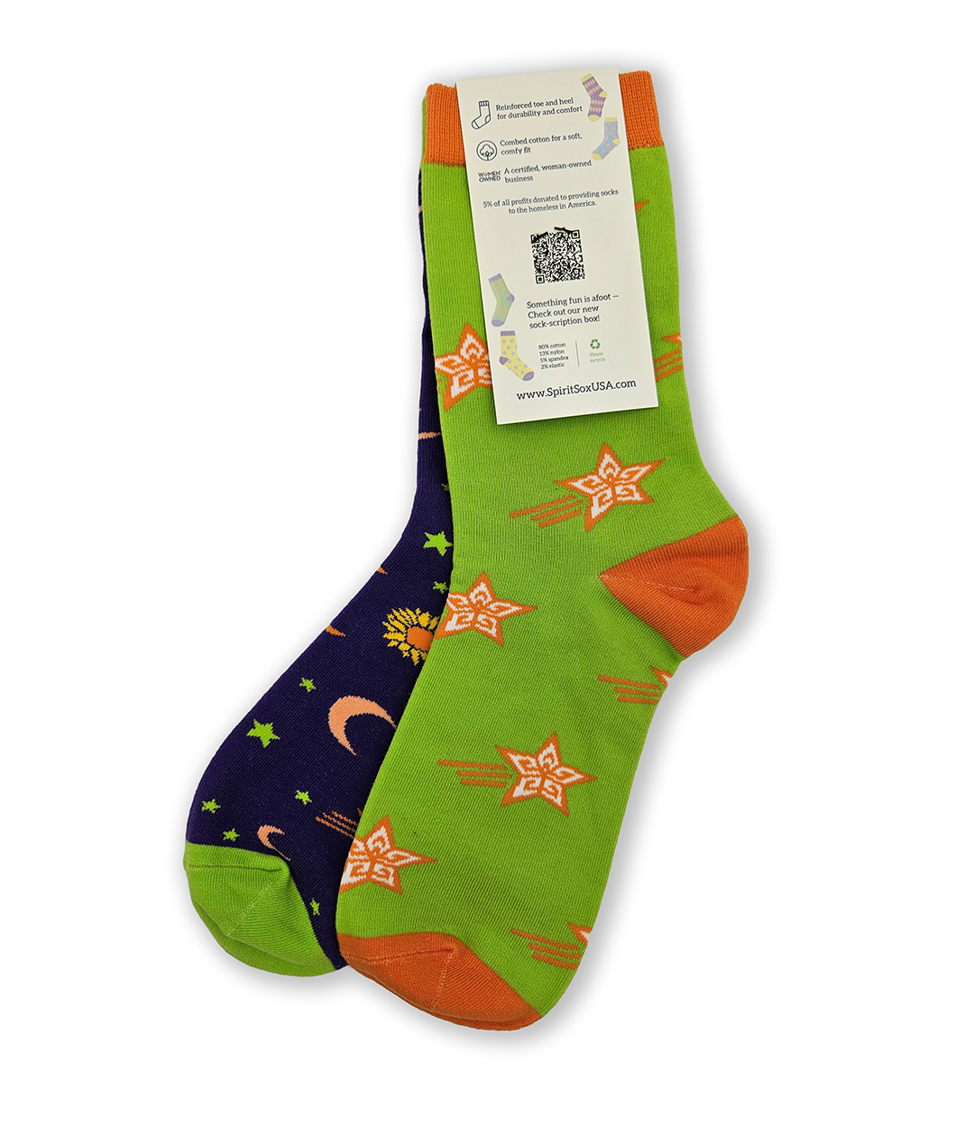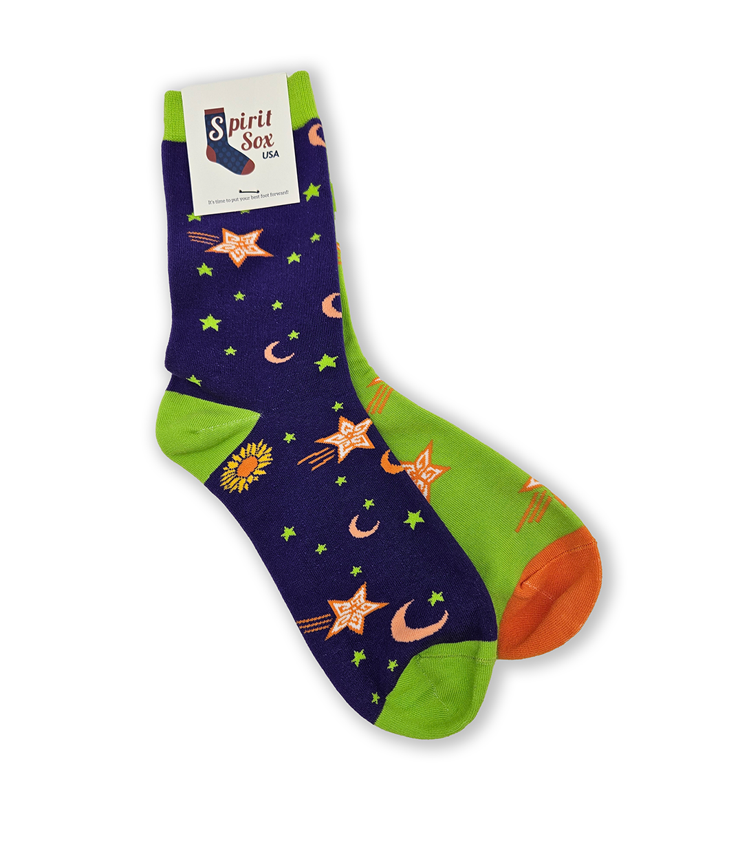 Celebrate Esther Day every day of the year with our vibrant mismatched socks, featuring the TSWGO bright green and deep purple, and adorned with stars, moons, and sunflowers—a heartfelt tribute to Esther’s love and spirit. Slip these comfy socks on to spread joy and love wherever you go!