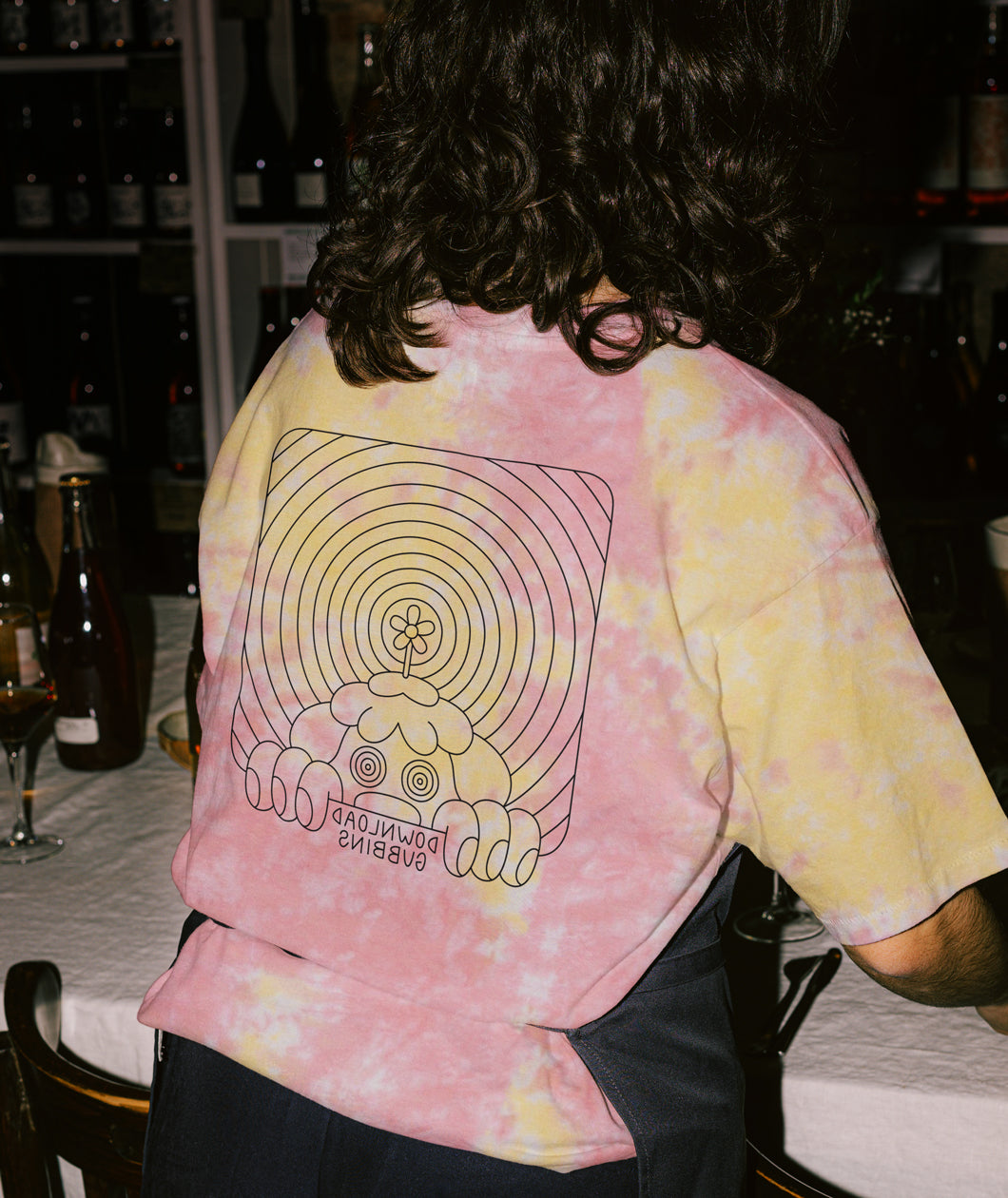 Hand tie dyed and hand screen-printed on 100% cotton tee