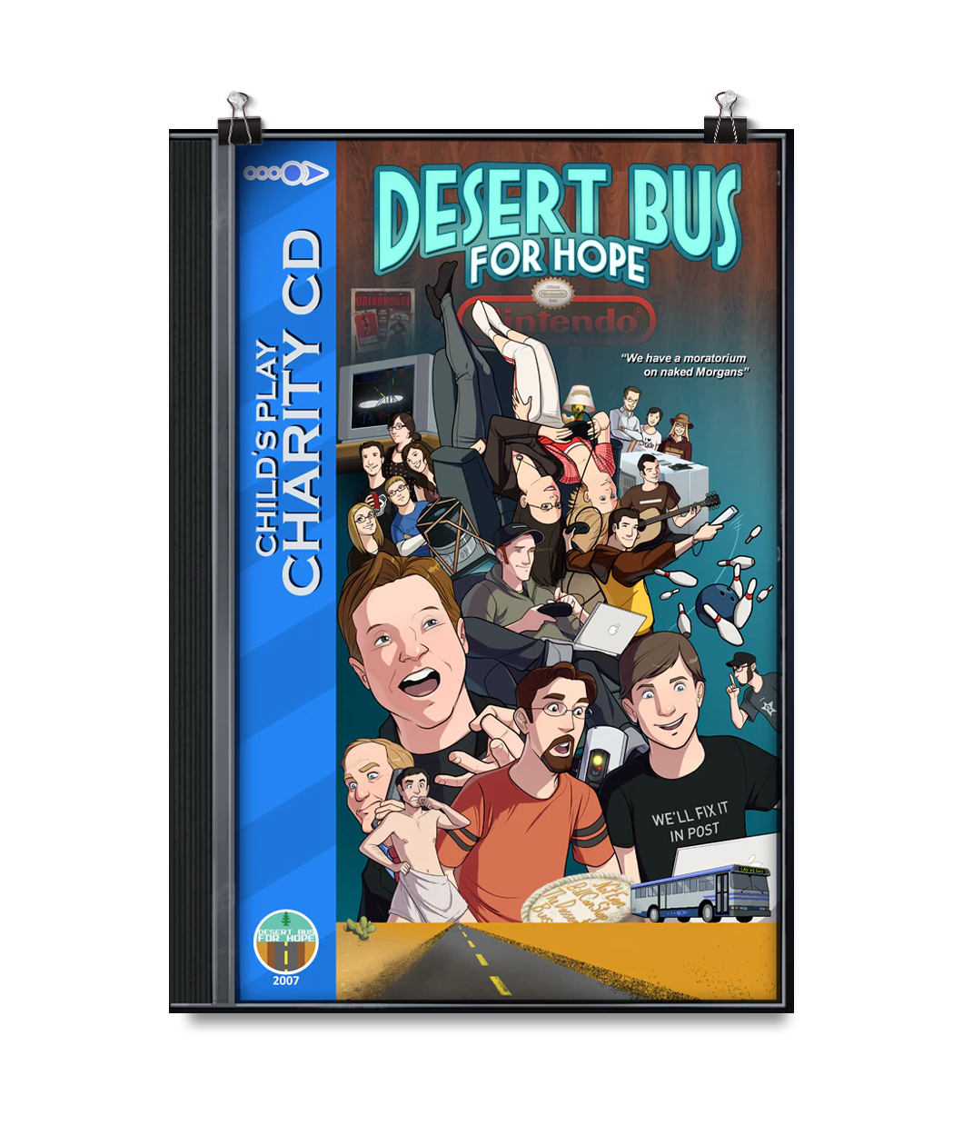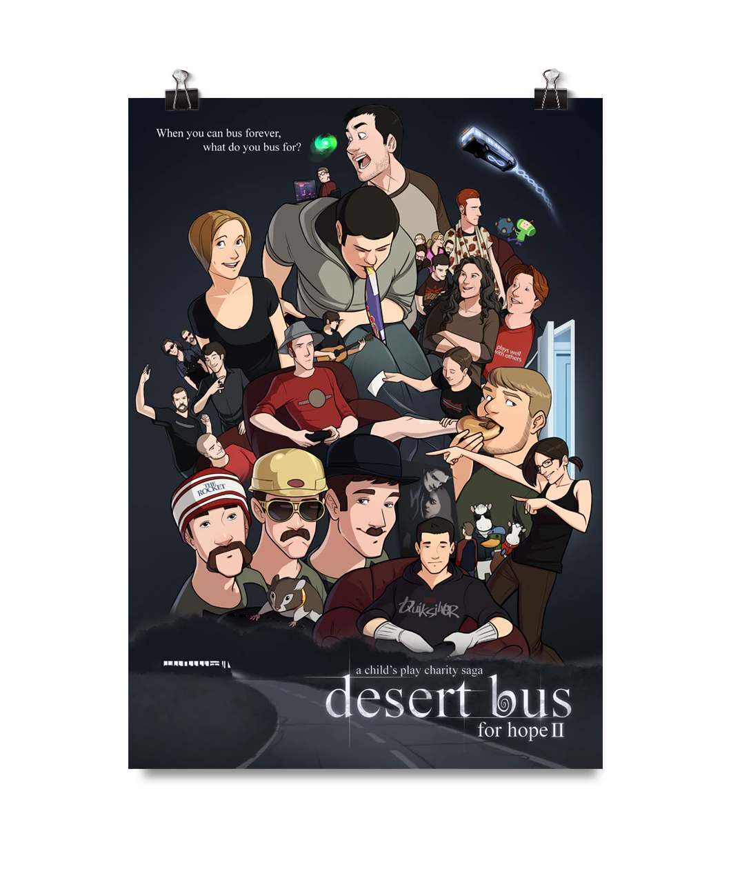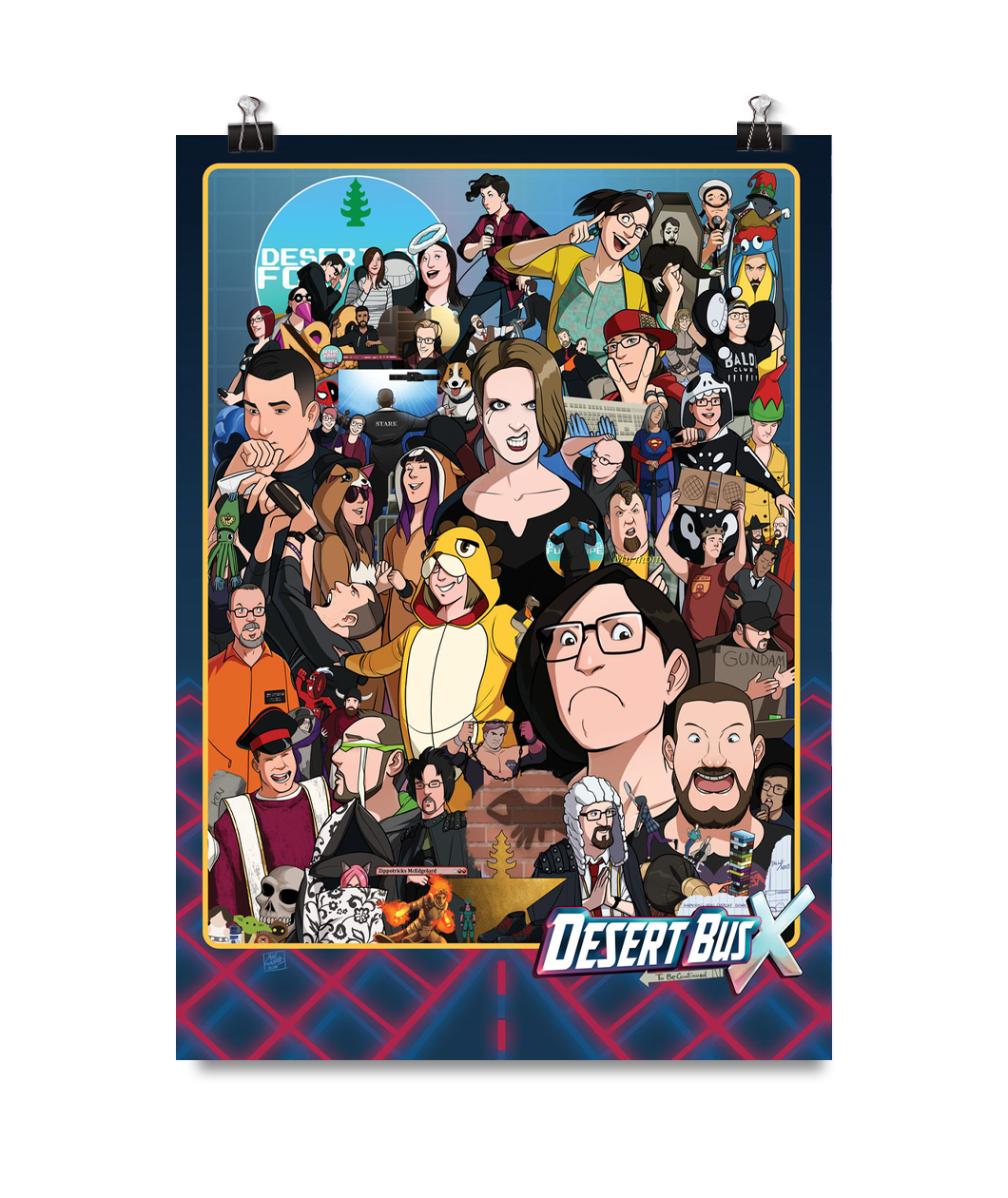 Decorate your walls with a full decade of Desert Bus! Featuring posters for the first ten years of Desert Bus, including Desert Bus 1, 2 and 3 posters that weren't available during those years! Think of them as "retcon" posters.