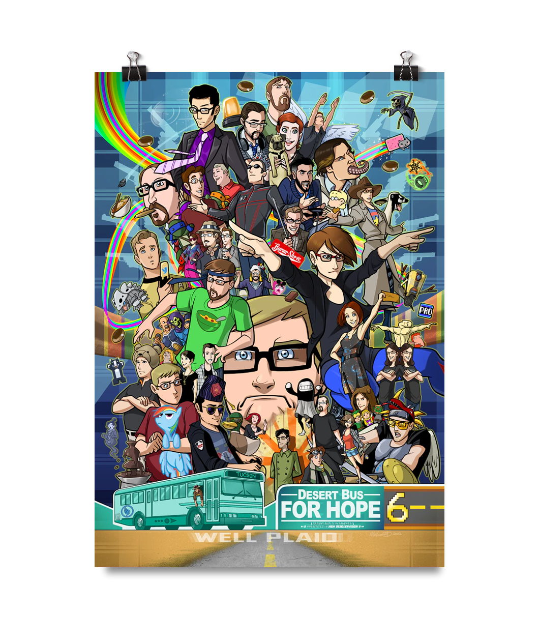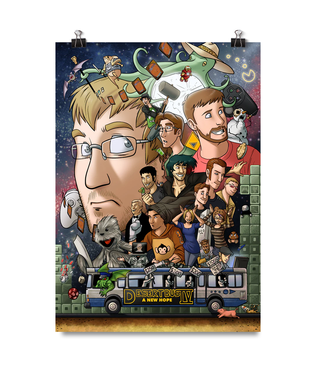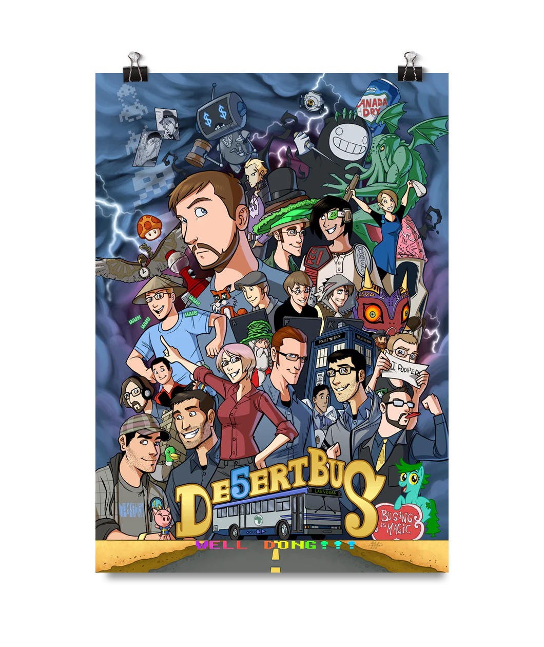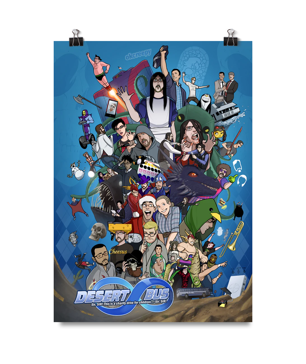 Decorate your walls with a full decade of Desert Bus! Featuring posters for the first ten years of Desert Bus, including Desert Bus 1, 2 and 3 posters that weren't available during those years! Think of them as "retcon" posters.