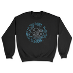 Crewneck: Printed on a black mid-weight Independent Trading Co. crewneck sweatshirt. 80/20 cotton/polyester blend fleece with 100% cotton face yarn.