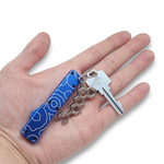 Bottle Opener: The handle design is laser engraved on blue anodized aluminum and the bottle opener itself is stainless steel.