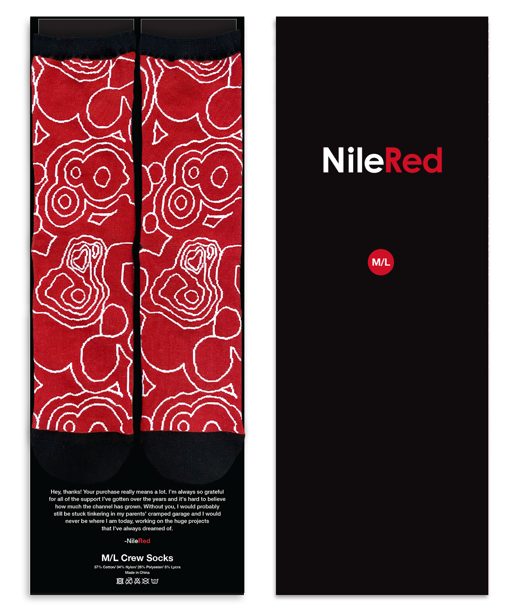 - Socks: Stretchy, stylish and comfortable, NileRed socks will become best friends with your feet! These socks are printed all over in red, white & black, and the pattern accurately depicts the NileRed logo.