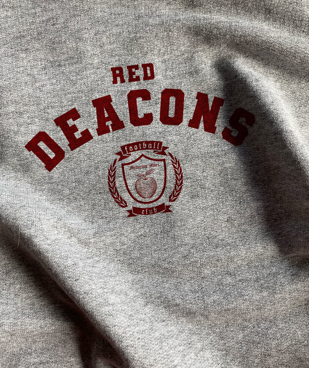 Screen printed on a Next Level Apparel quarter zip sweatshirt, 80/20 cotton/poly.