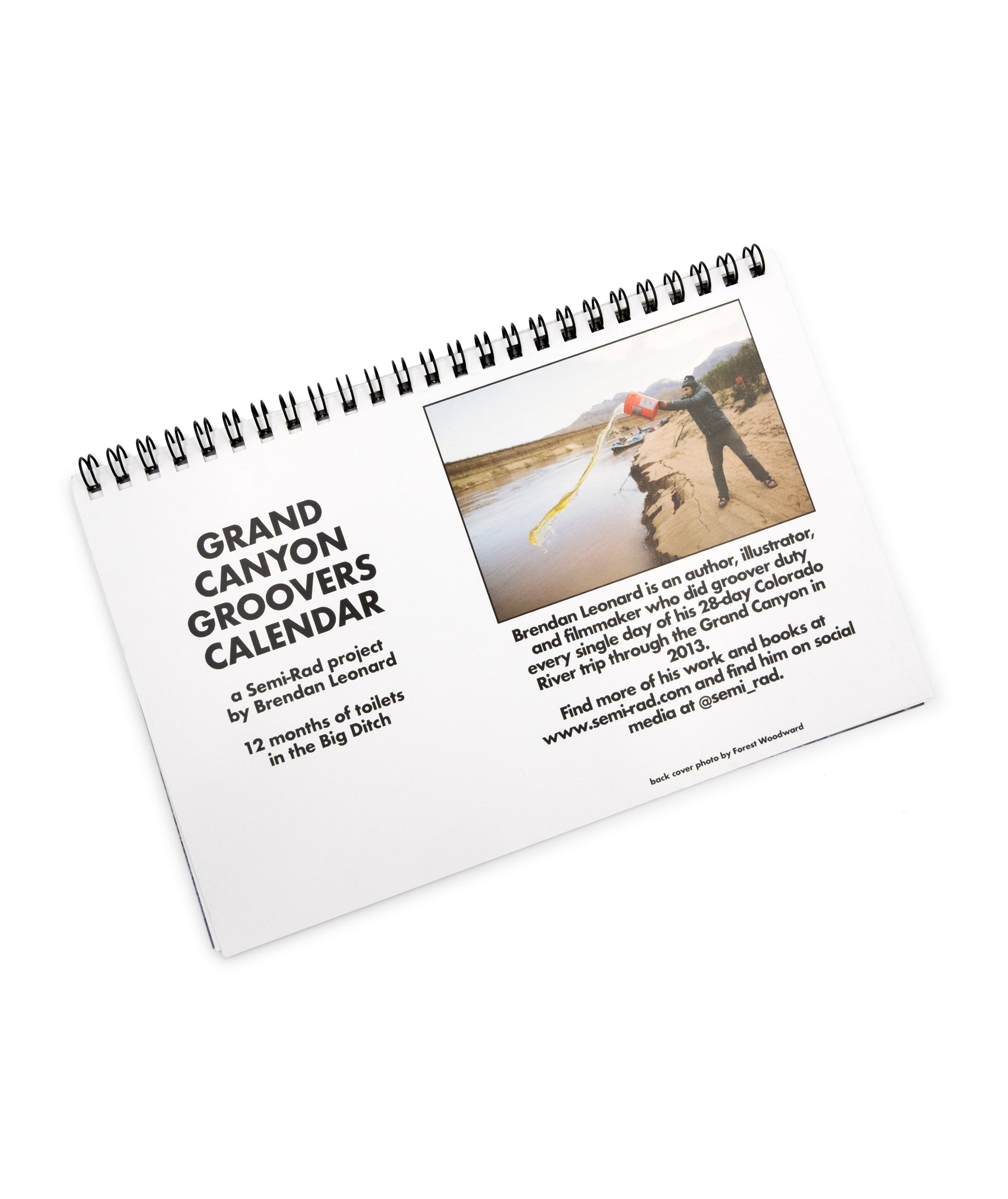 A calendar featuring 13 photos of groovers (portable toilets used on multiday whitewater rafting trips) along the Colorado River in the Grand Canyon.