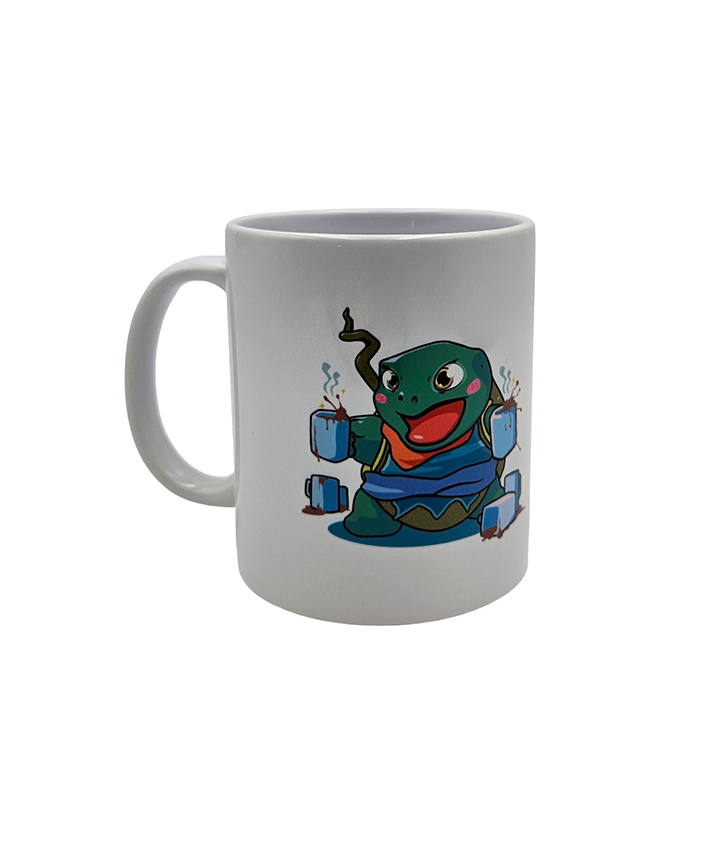 11oz white mug with sublimation printing. Hand-wash only recommended.